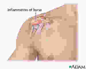 A bursa is a fluid filled sac which functions to reduce friction between two surfaces in the body. Bursae are often located adjacent to tendons near large joints. In the shoulder, a bursa sits under the acromion (part of the shoulder-blade), giving rise to its name, 'sub-acromial bursa'. When this sub-acromial bursa becomes inflamed, it causes pain and movement restriction and is often termed 'shoulder bursitis'.